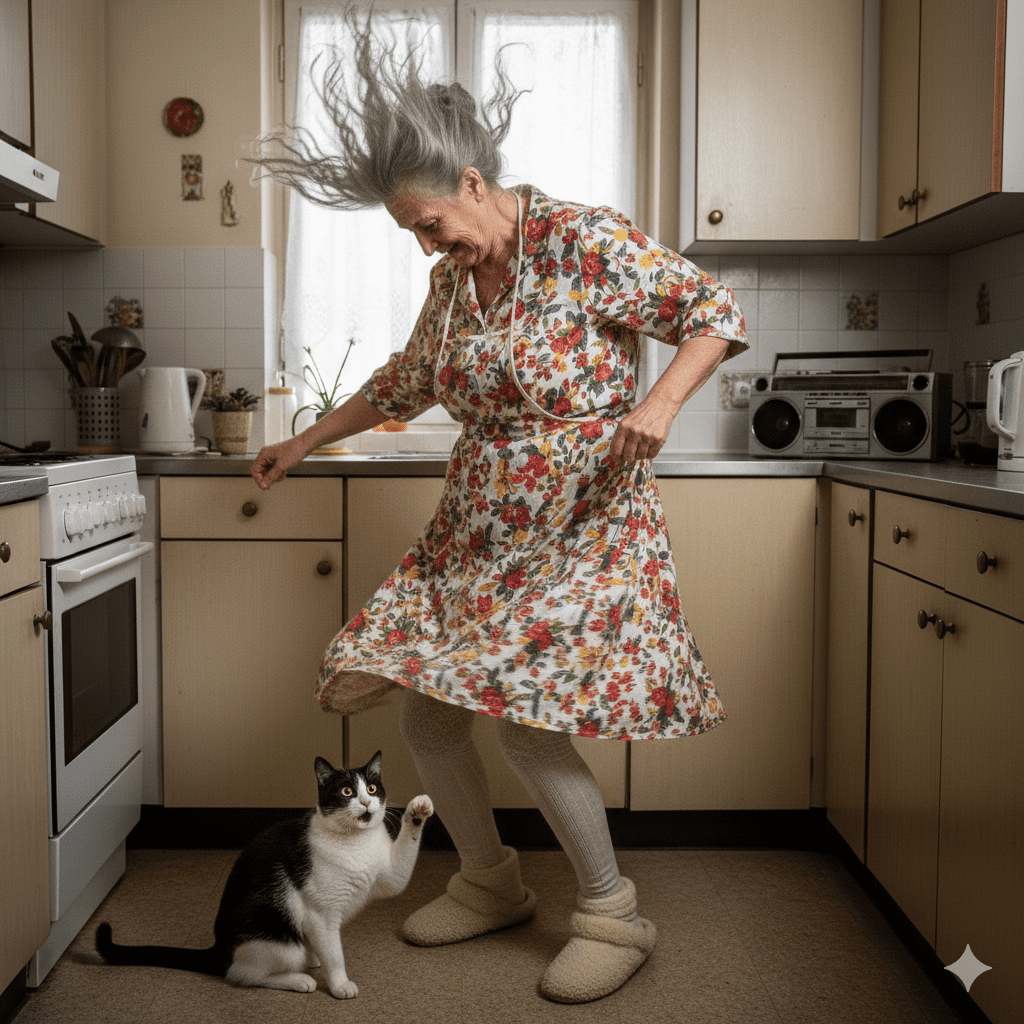 Also krame ich meine alten Lieblingssongs raus, längst digitalisiert, damit die Stereoanlage nicht beleidigt ist. Dann marschiere ich aufs Tanzparkett in der Küche.